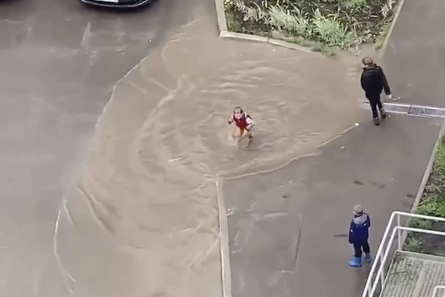 В Перми три ребенка решили искупаться в огромной луже во дворе
