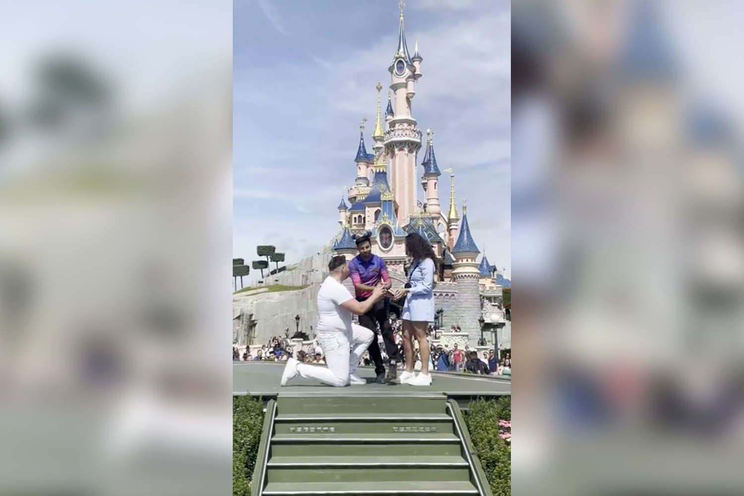 Мужчина решил сделать предложение руки и сердца своей возлюбленной в Парижском «Диснейленде», он договорился с администрацией парка о том, что поднимется с девушкой на огороженную площадку, но все пошло не по плану.