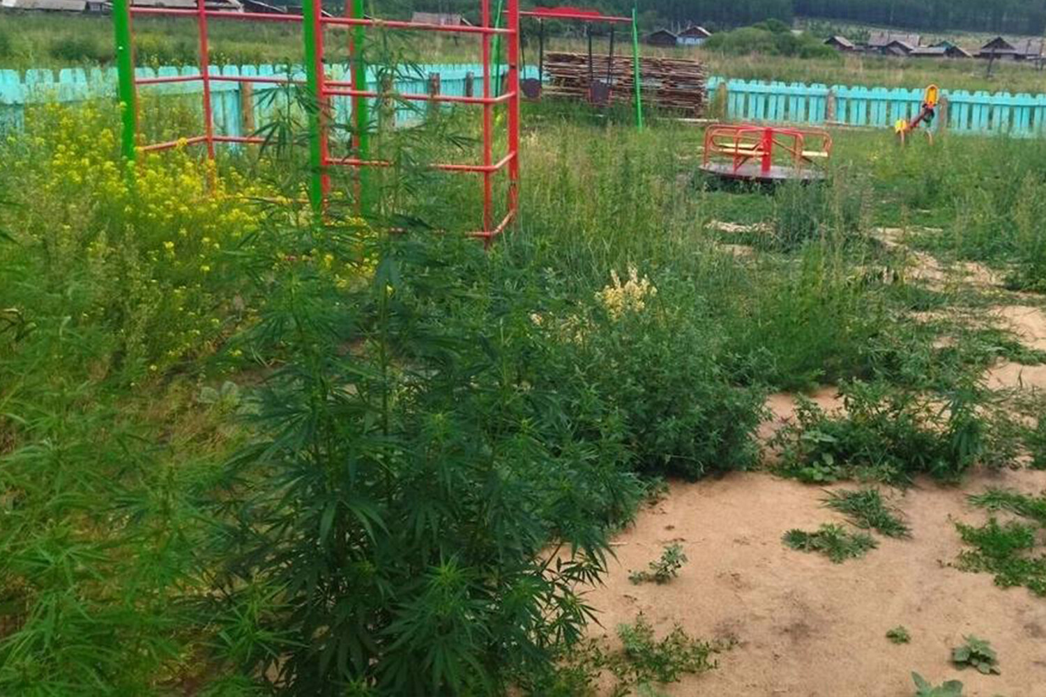 Жители Бурятии показали детскую площадку, заросшую коноплей высотой в метр