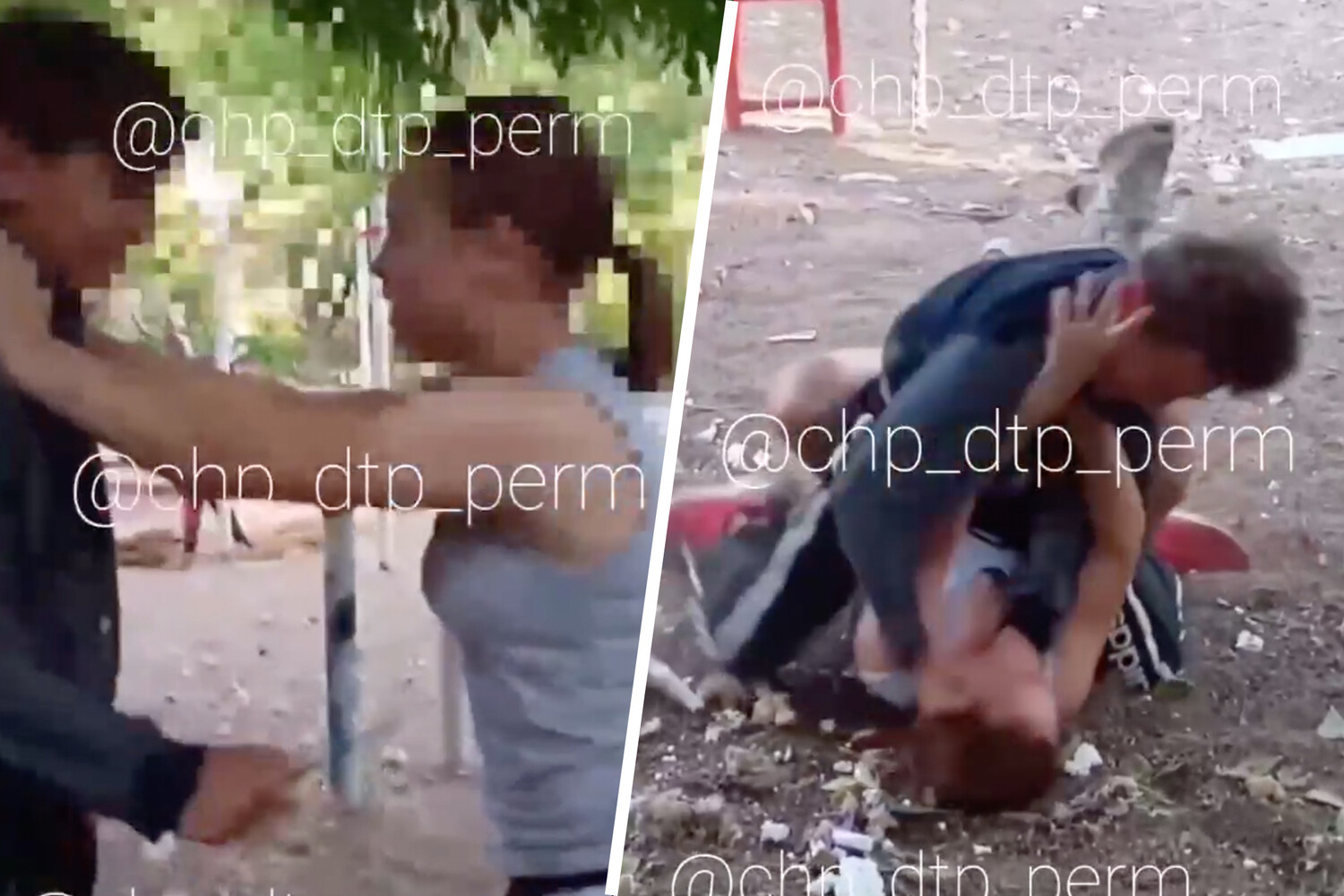 На кадрах видно, что девочка прижимает к дереву мальчика, который угрожает ей ножом. Позже тот вырывается и сам нападает на обидчицу. Он кидает девочку на землю и наносит удары по лицу и телу. Разборки сопровождаются ненормативной лексикой. Подростков разнимает женщина, проходящая мимо детской площадки.