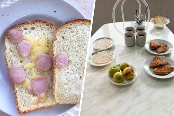 Большинство детей отказались от бесплатных завтраков. Родители предоставили фото еды. На снимках видно, что на бутерброды положено несколько кусков сосисок и обрезки сыра, а яблоки выглядят несвежими.