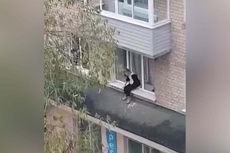 Очевидцы сняли происходящие на видео. На снимках видно, как подросток идет по козырьку и залезает в открытое окно квартиры. После этого он садится на подоконник.