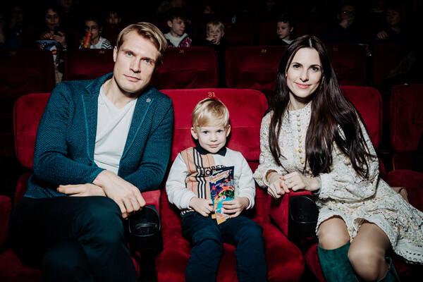 Звезда «Движения вверх» Кирилл Зайцев вышел в свет с супругой и сыном. Они приехали в московский кинотеатр на премьеру мультфильма «Иван Царевич и Серый Волк — 5».