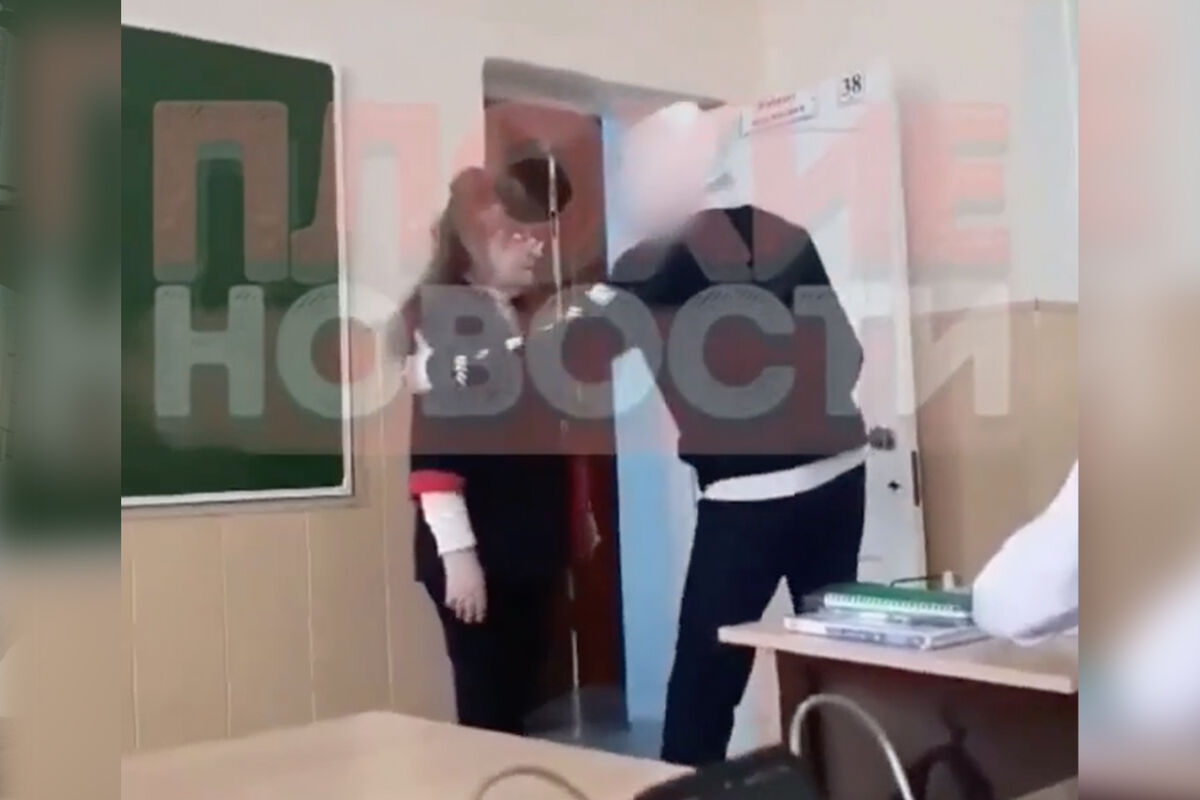Школьник не послушался учительницу, которая попросила его покинуть класс, толкнул женщину и выгнал ее в коридор. После этого старшеклассник закрыл дверь. Происходящее очевидцы сняли на видео.