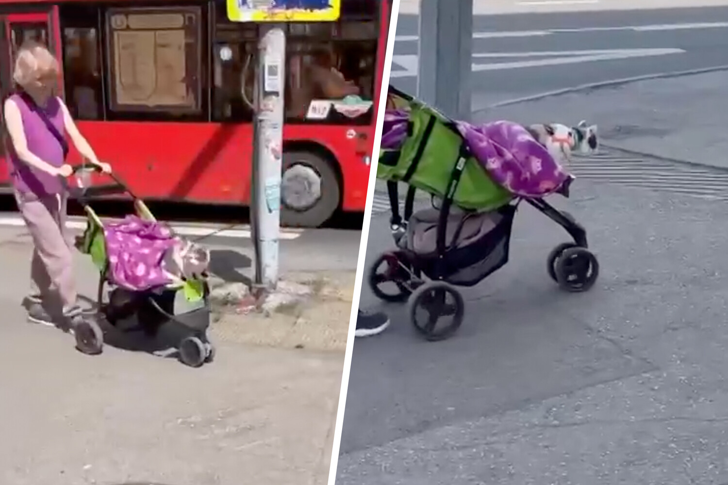 На них местная жительница везет по улице детскую коляску, в которой сидит кошка на шлейке. Животное сидит на самом краю коляски и с любопытством смотрит по сторонам. В комментариях в соцсетях пользователи сравнили животное со «вперед смотрящим на корабле» и порадовались такой интересной компании.