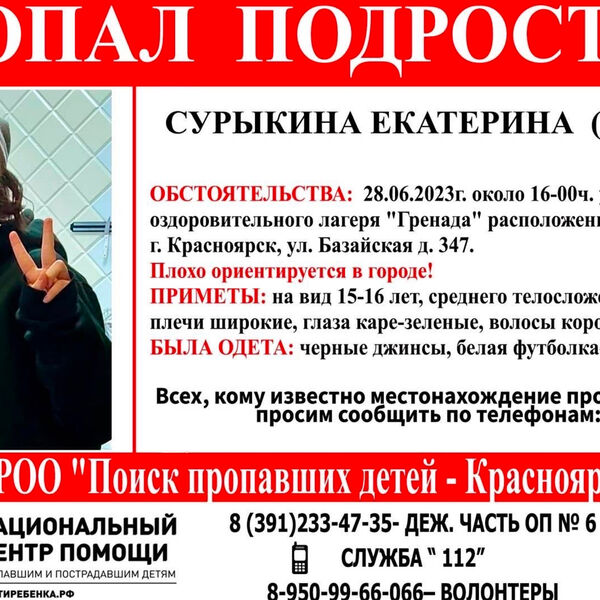 13-летняя школьница пропала из оздоровительного лагеря в Красноярске