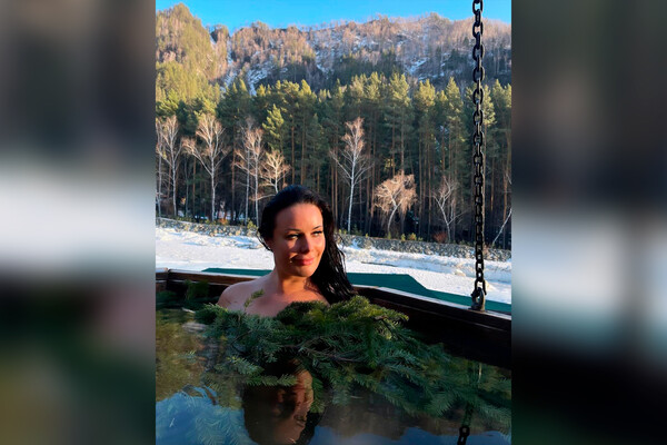 «Алтай. Не могли не попариться в баньке по-черному и не запрыгнуть в чан», — отметила артистка.