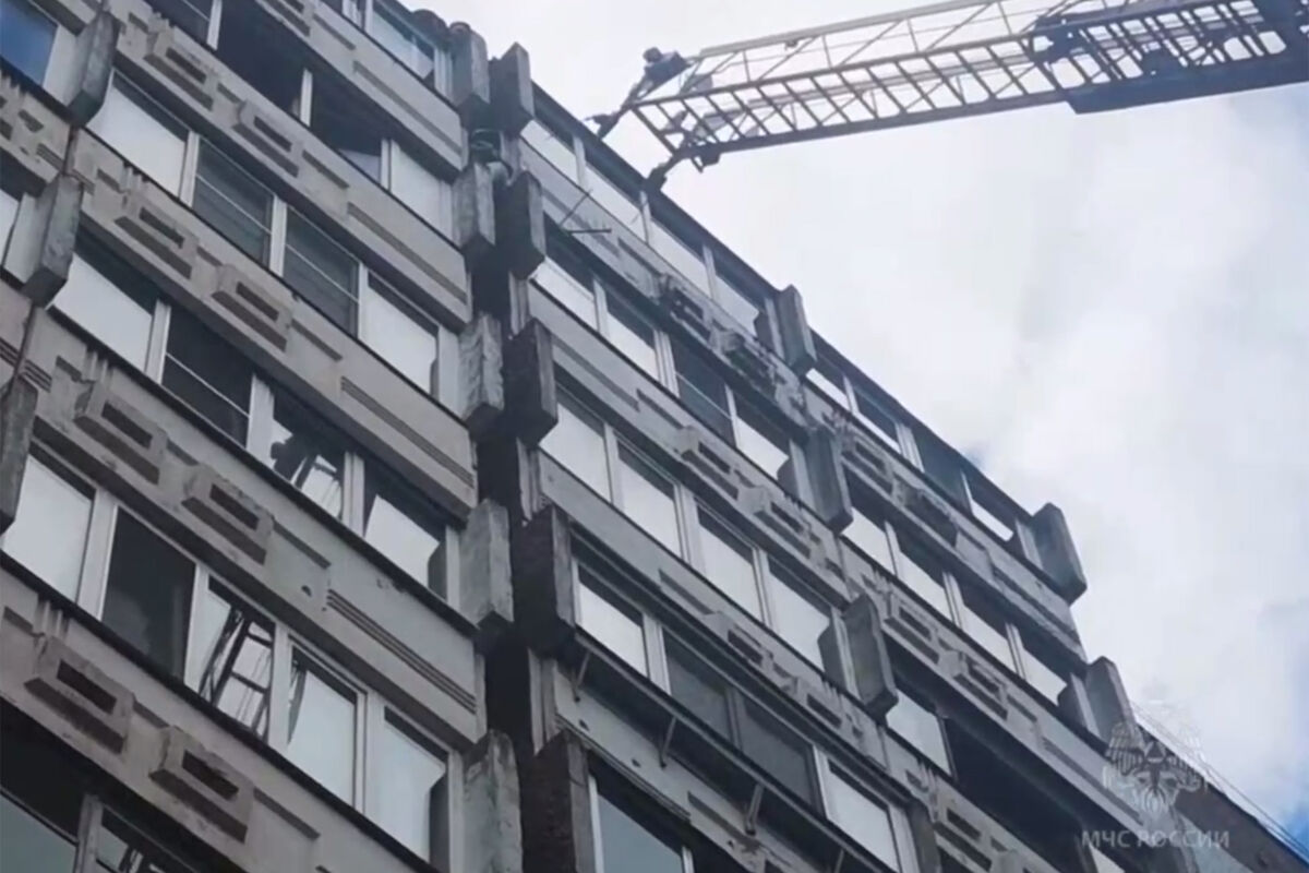 Десятилетняя девочка забралась на крышу десятиэтажного дома. Перешагивая между корпусами, школьница сорвалась и застряла между стенами на уровне девятого этажа.