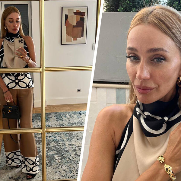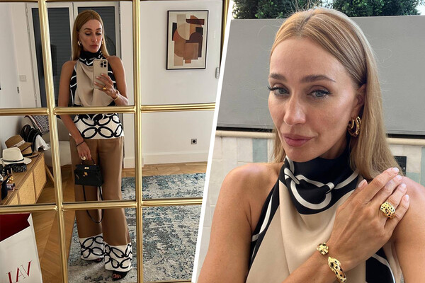 «Мамулечка в деле. Комбинезон от Valentino, сумочка Hermes, мюли на каблуках Saint Laurent, украшения Cartier», — отметила девушка.