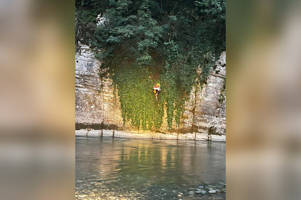 Инцидент произошел 22 августа в районе Форелевого хозяйства на реке Мзымта. Подросток соскользнул с высоты 15 метров над водой вниз, но падая зацепился за ветки.