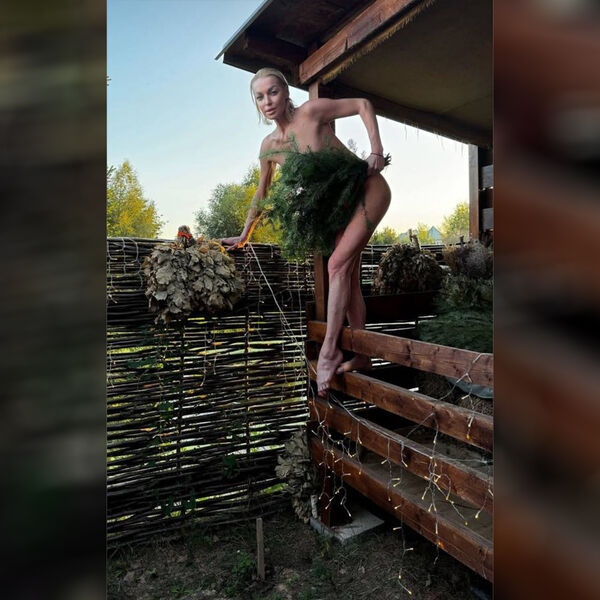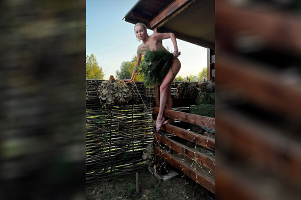 Балерина Анастасия Волочкова залезла голой на забор, прикрываясь вениками. Звезда рассказала в личном блоге, что восстанавливала силы в бане перед спектаклем.