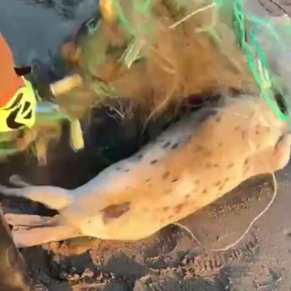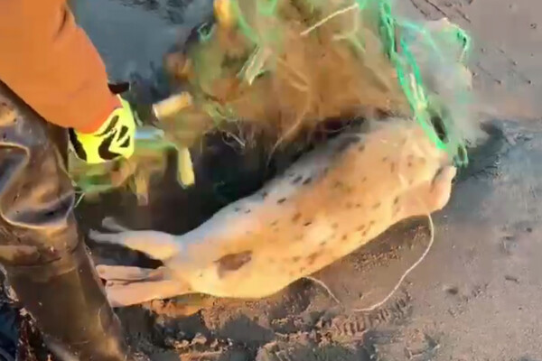 Мужчина, работающий слесарем по ремонту технологических установок, и его сын 3 октября пошли на пляж в районе села Советского, чтобы поискать на берегу ракушки. Вместо этого они нашли животное, которое отчаянно пыталось высвободиться из сети.