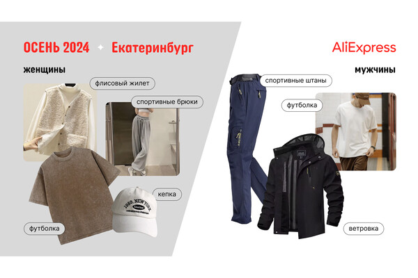 Женщины в Екатеринбурге предпочитают комфорт и тепло, выбирая плотные флисовые жилеты под барашка, повседневные футболки оверсайз и серые спортивные брюки, дополняют образ бейсболками из хлопка. В гардеробе екатеринбурженок в этом сезоне также присутствуют утепленные вязаные кардиганы, черные широкие брюки с высокой талией, что позволяет создать гармоничный образ, и длинные серые пальто с отложным воротником, добавляющие элегантности. Мужчины в Екатеринбурге делают ставку на функциональность и комфорт, выбирая ветровки, спортивные штаны и базовые футболки. Также в их гардеробе уже появились теплые толстые парки, которые позволяют сохранять тепло даже в самые холодные дни.