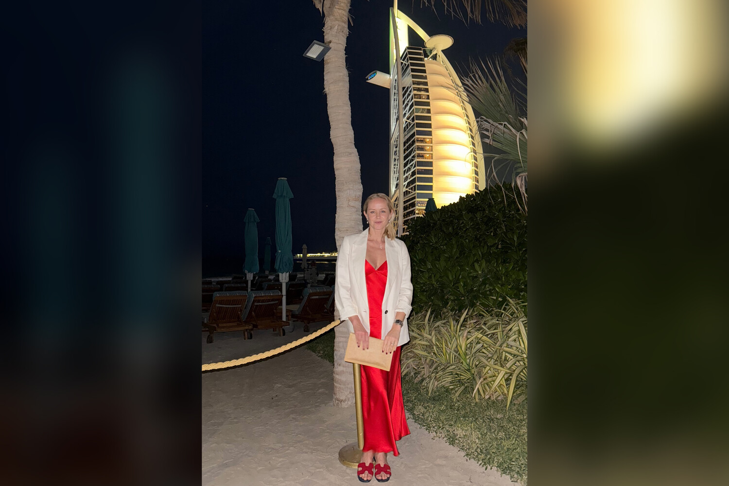 Бывшая супруга народного артиста России Григория Лепса появилась на публике в красном платье с глубоким декольте, дополнив образ трендовым жакетом. Экс-танцовщица Анна Шаплыкова позировала в известном ресторане Дубая с видом на знаменитый отель «Парус» (Burj Al Arab) и поделилась кадром в соцсетях. Женщина провела вечер в компании старшей дочери Евы.