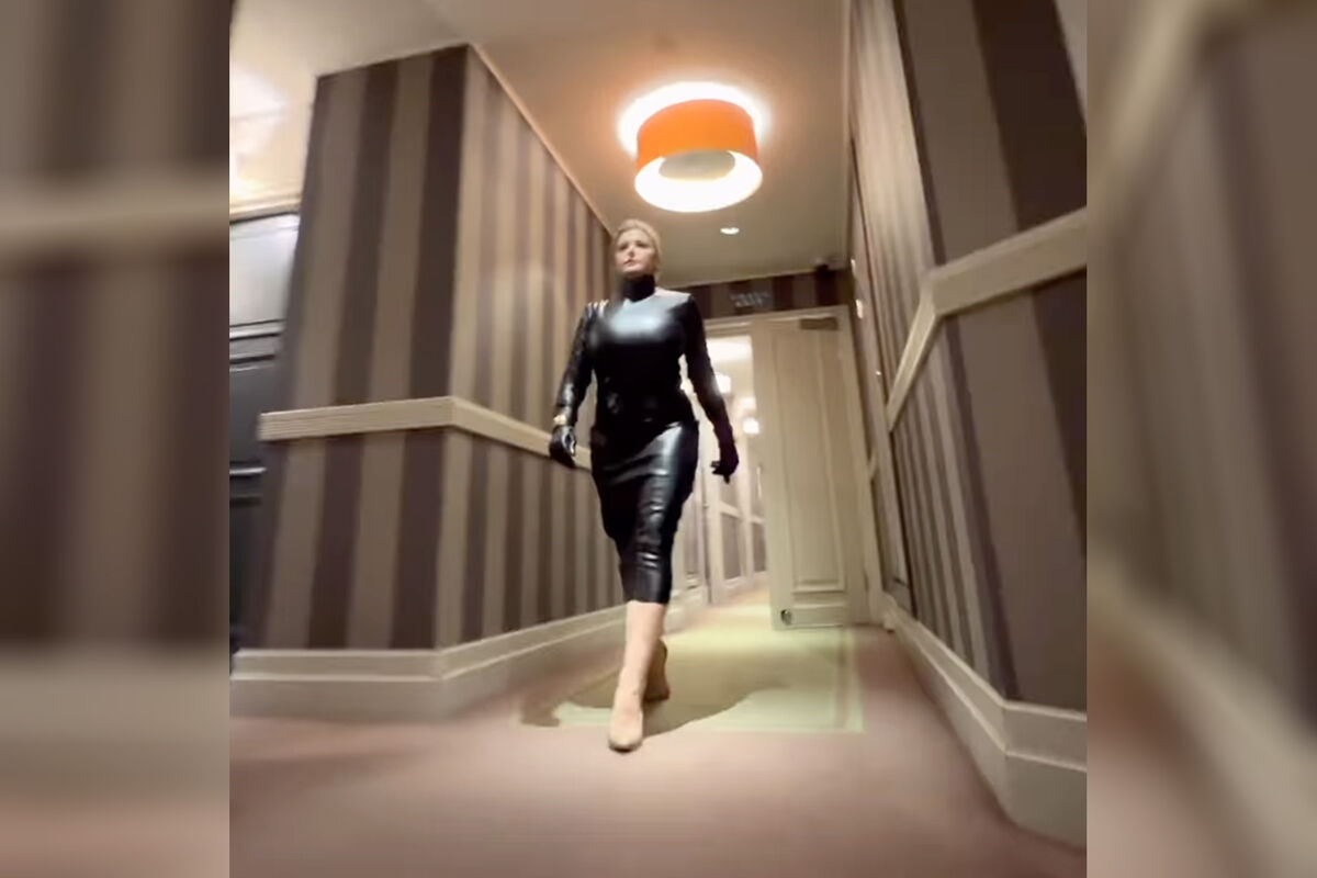 Актриса Ирина Пегова показала фигуру в обтягивающем платье. Звезда прошлась по длинному коридору в кожаном наряде и поделилась кадрами в соцсетях.