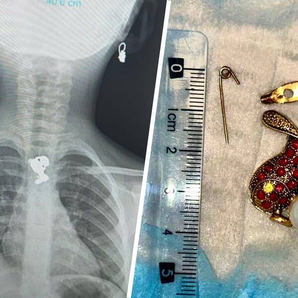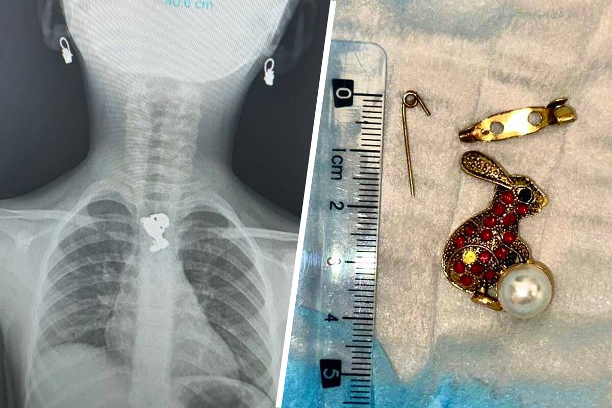 После госпитализации маленькой пациентки, ей провели рентген — обследование показало, что брошь в виде зайца застряла в пищеводе. Ее удалили с помощью специальных инструментов.