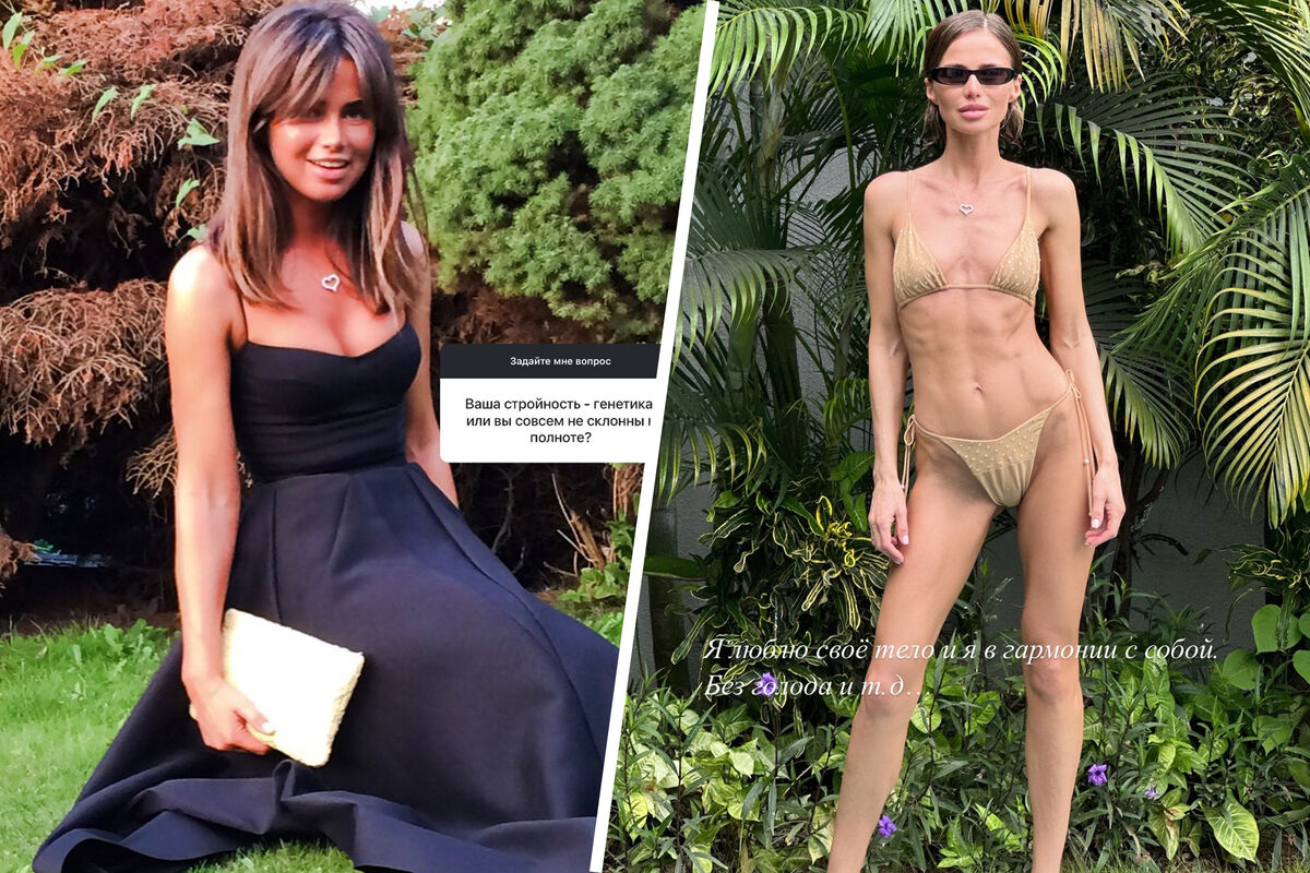 «Так я выглядела раньше, когда не занималась активно спортом, и у меня были неполадки с питанием. На первом фото можно многое увидеть. Тогда я не была довольна своим внешним видом... отечность, неправильное питание и сон, который для меня не являлся важной составляющей. Сейчас я люблю свое тело, я в гармонии с собой. Без голода и т.д.» — поделилась артистка, отвечая на вопрос подписчика.