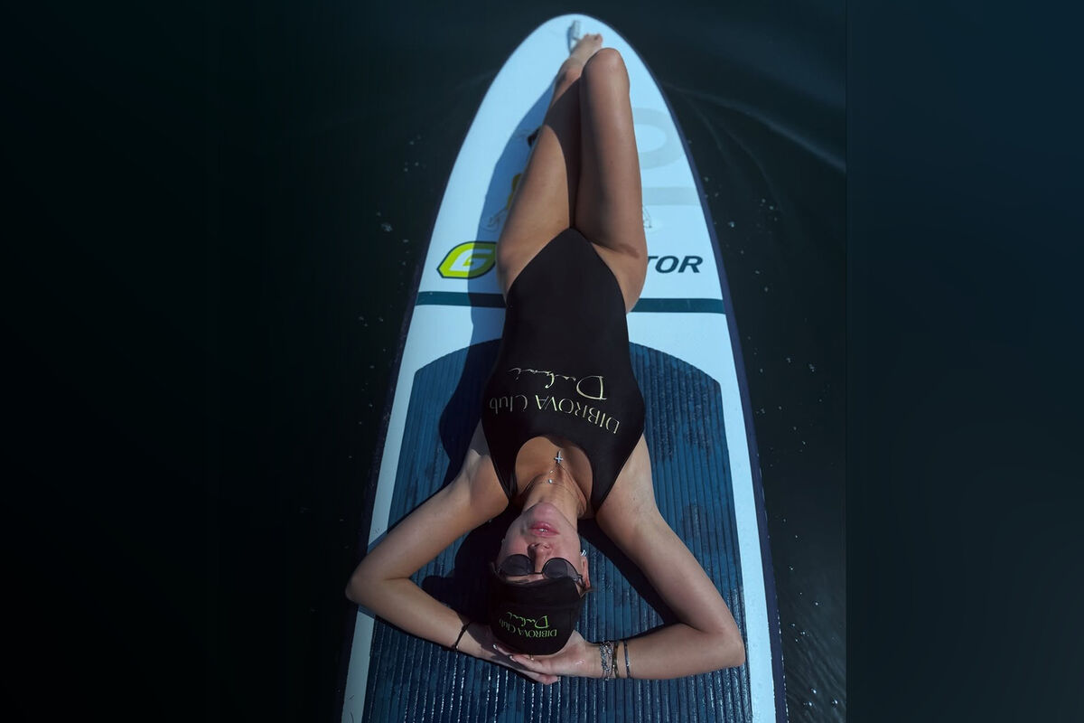 Жена телеведущего Дмитрия Диброва показала фигуру в купальнике. Модель Полина Диброва позировала на доске для сап-серфинга и поделилась кадрами в Instagram (владелец компания Meta признана в России экстремистской и запрещена).