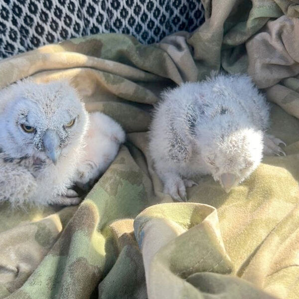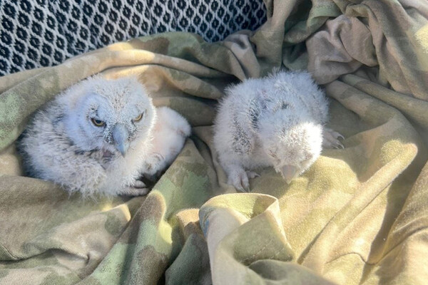 По словам общественников, трех детенышей ушастой совы нашли люди, спилившие дерево. Они не видели, что в дупле было гнездо, и оставили птенцов без дома.