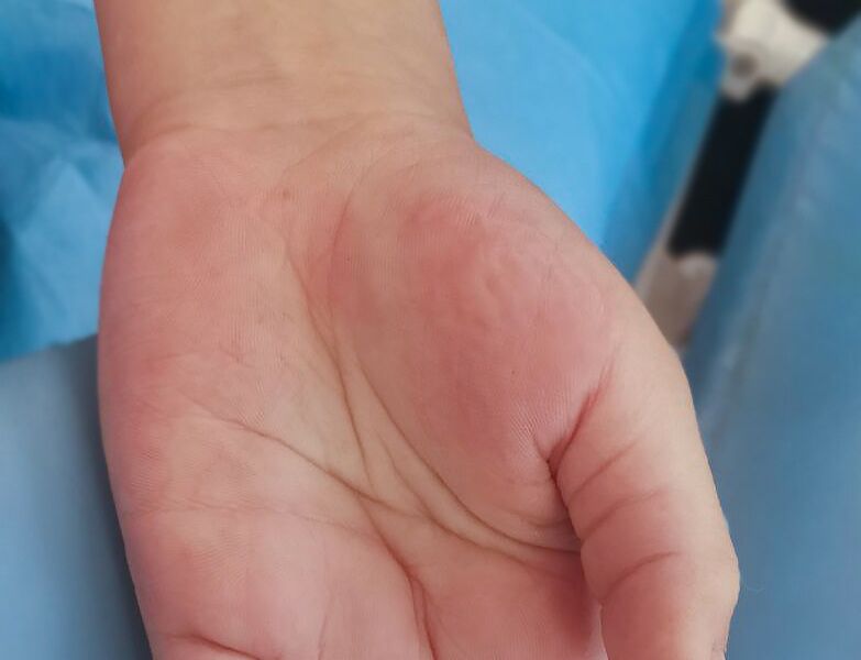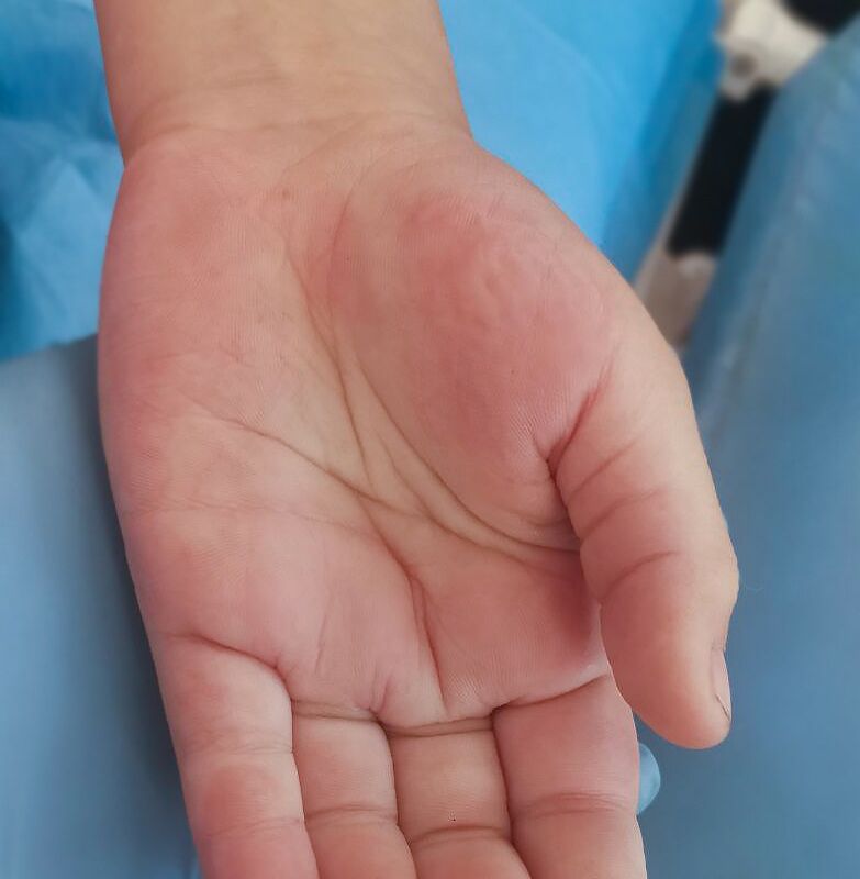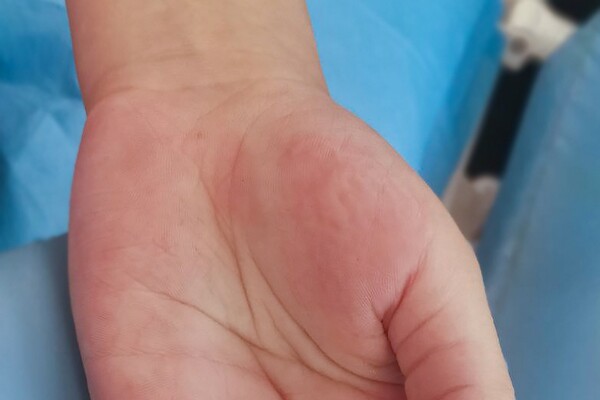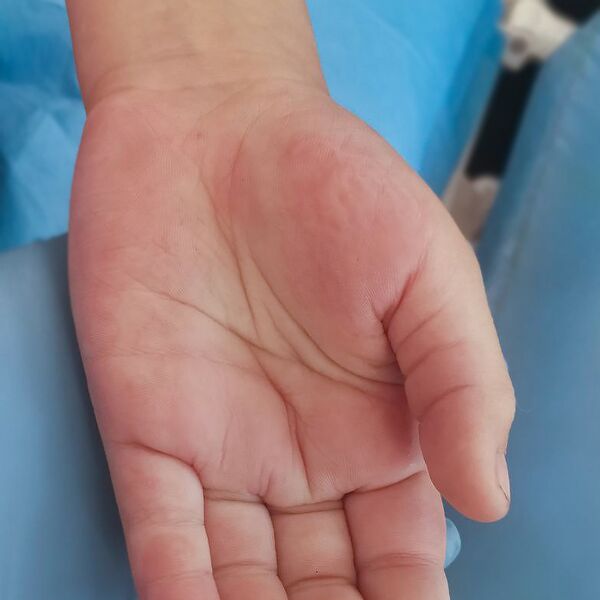 Ребенка привезли родители. Они пояснили, что дочь хотела достать из холодильника сливочное масло и приложила руку к стенке металлической морозильной камеры. Рука прилипла к поверхности. Чтобы освободить ладонь, взрослые полили на нее теплой водой, а после этого показали девочку медикам.