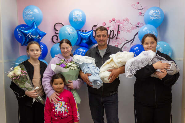 Дома братьев ждали три старшие сестры. В медучреждении пожелали родителям радости и сил для воспитания шестерых детей.