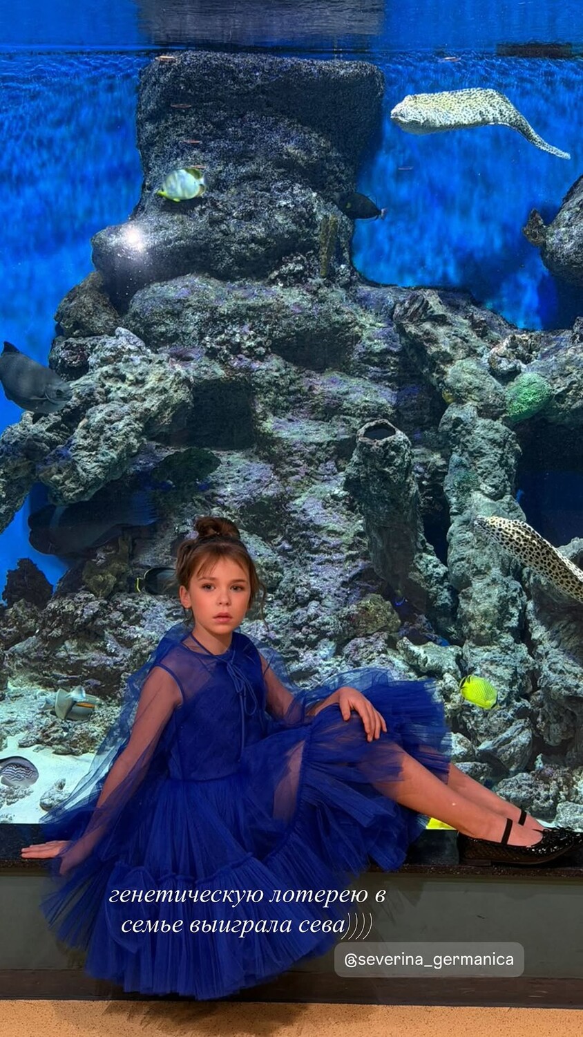 Кинорежиссер Валерия Гай Германика показала свою младшую дочь. Звезда опубликовала в Instagram (владелец компания Meta признана в России экстремистской и запрещена) редкое фото повзрослевшей Северины, которой в апреле исполнилось девять лет. Девочка позировала в пышном платье в океанариуме.