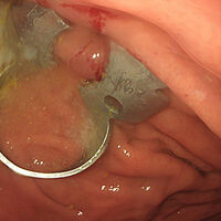 «Для извлечения инородного тела мы выполнили гастроскопию, в ходе которой захватили стоматологическую скобу эндоскопической петлей. Так как инородный предмет был острый, то это создавало высокие риски травмировать слизистую, мы поэтапно провели скобу через пищевод, устье пищевода и гортаноглотку», — рассказала эндоскопист Анастасия Лазарева, добавив, что манипуляция длилась 10 минут.
