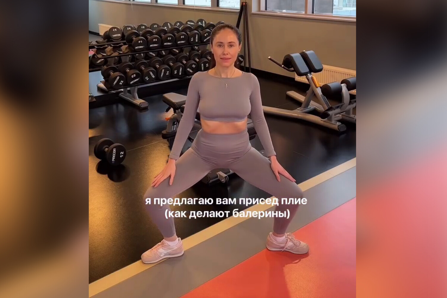 «Топ-5 моих любимых упражнений, чтобы привести тело в тонус перед Новым годом. 20 минут каждый день», — отметила она.