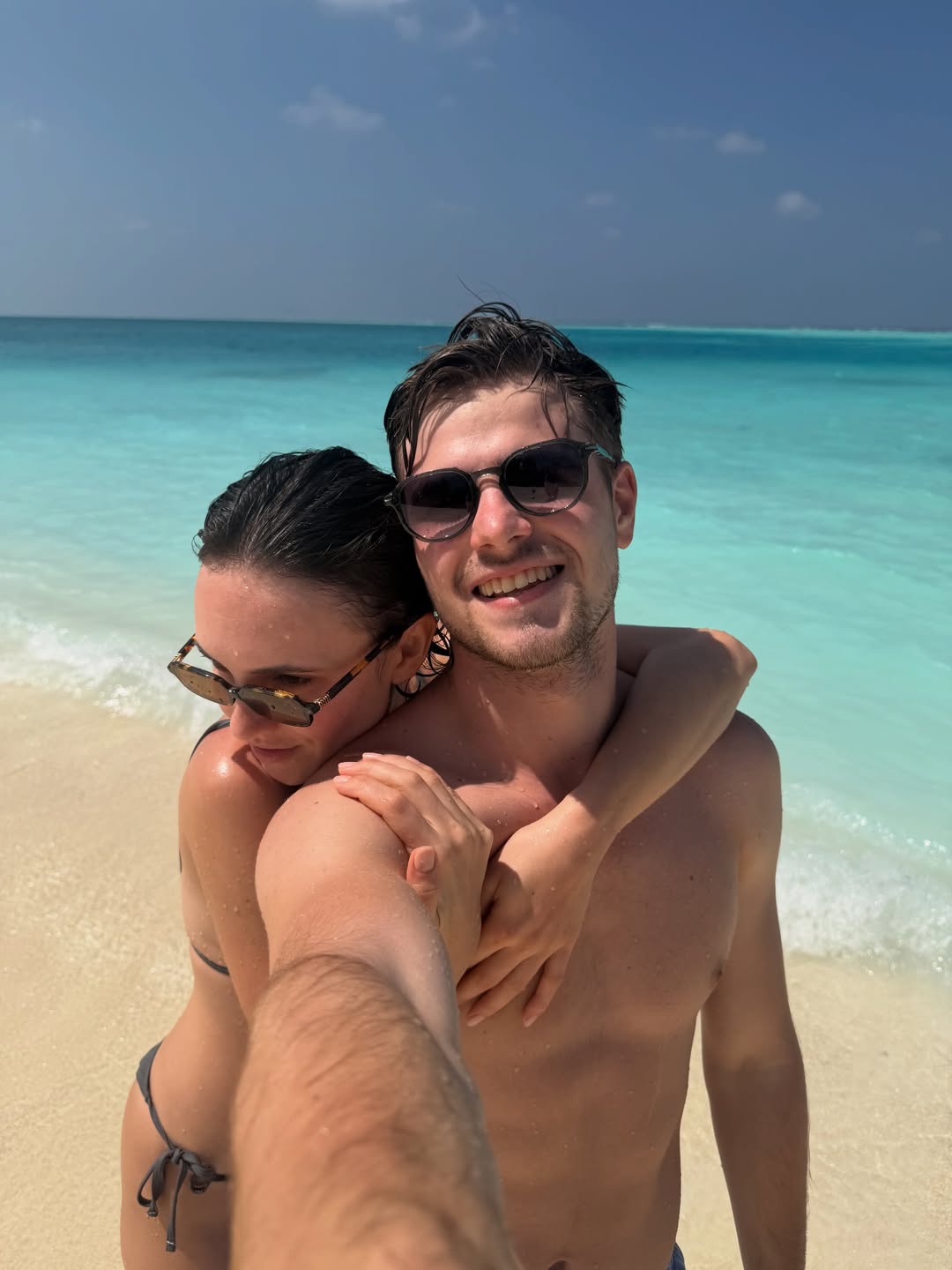 Актриса Стася Милославская и футболист Егор Ушаков провели отпуск на Мальдивах. Артистка снялась в бикини на пляже, обнимая жениха. Она поделилась кадрами с отдыха в Instagram (владелец компания Meta признана в России экстремистской и запрещена).
