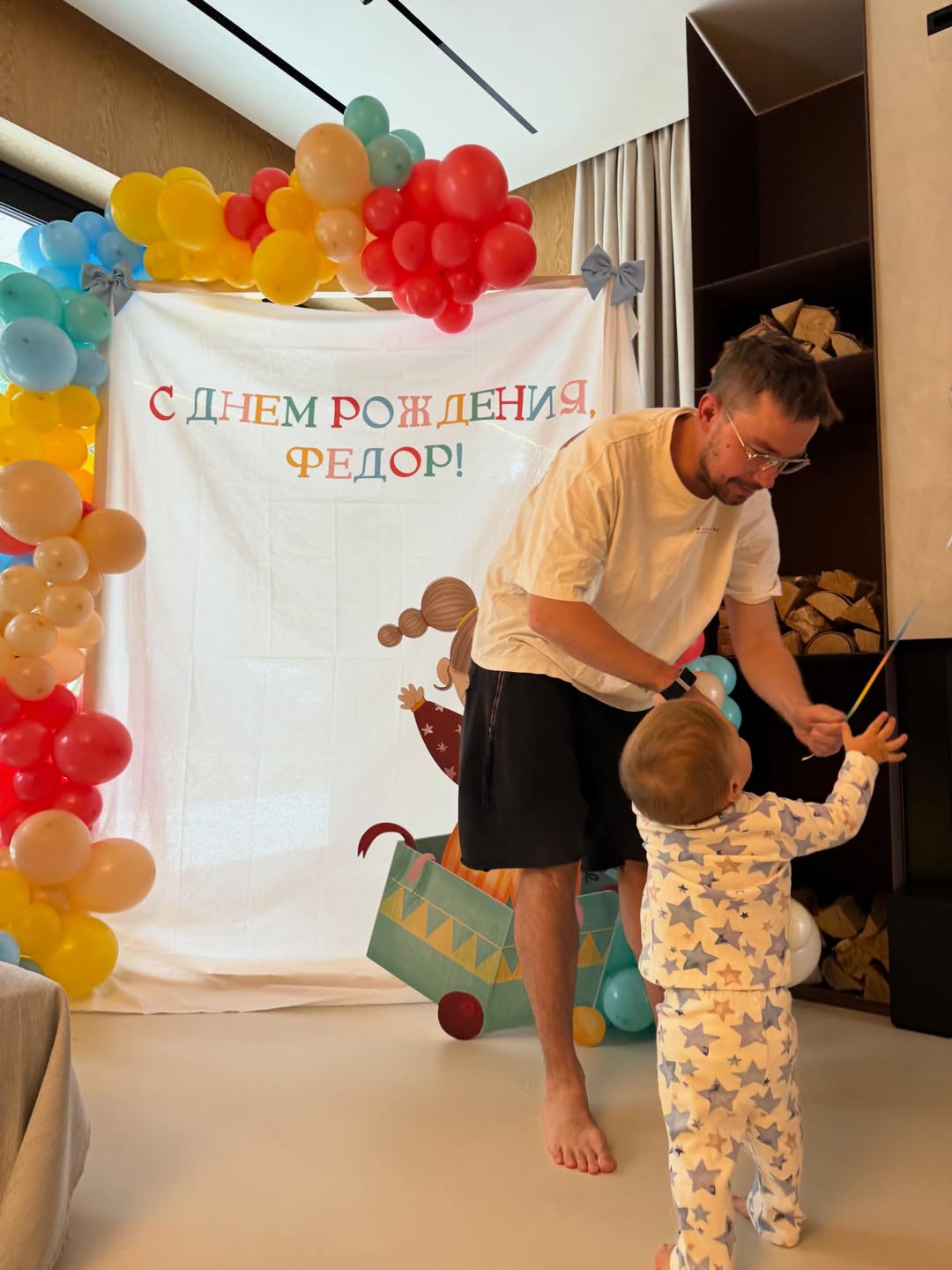 Жена актера Саши Петрова поделилась домашними кадрами с дня рождения сына. Федору исполнился один год. Виктория Петрова посвятила имениннику пост в Instagram (владелец компания Meta признана в России экстремистской и запрещена).