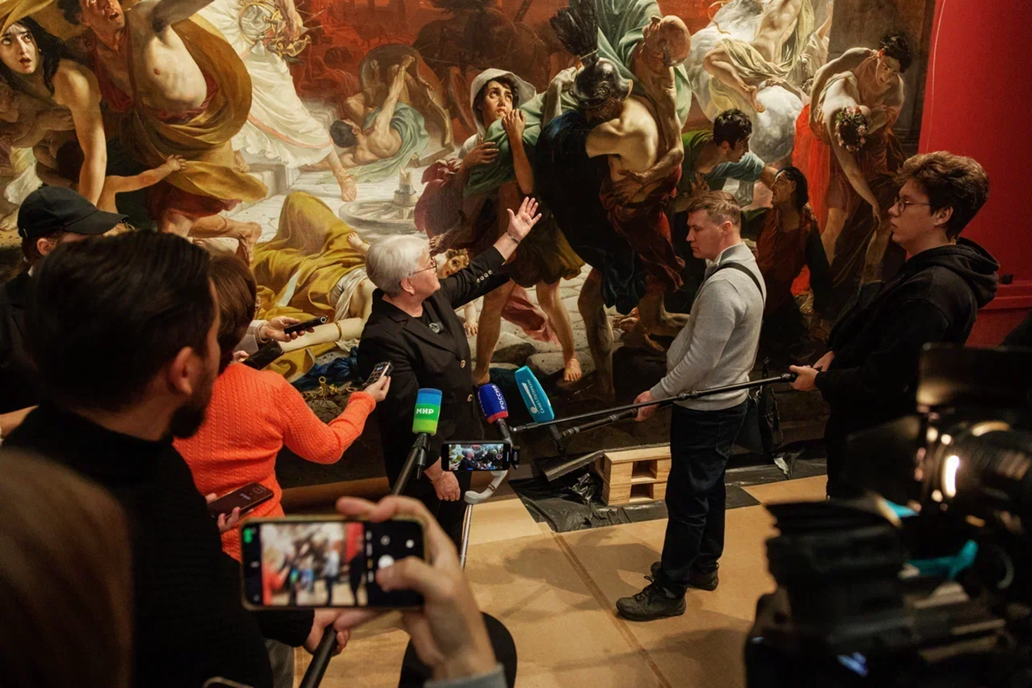 Сегодня, когда завершается работа над полотном Брюллова, самое важное и самое правильное, что мы можем сказать, — огромное спасибо реставраторам: за время, за труд, за передачу навыков и знаний студентам. Именно так мы сохраняем историю, сохраняем национальное достояние», — рассказала Елена Давыдова, начальник Управления ПАО «Газпром», генеральный директор Фонда поддержки культурных инициатив Газпрома.