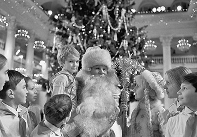 Дед Мороз и Снегурочка у новогодней елки, 1974 год
