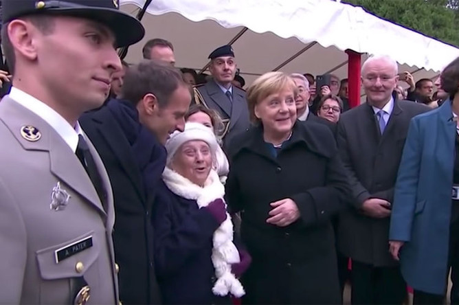 100-летняя француженка обратилась к Меркель и спросила: «Это вы мадам Макрон?», на что та по-немецки ответила: «Канцлер Германии».