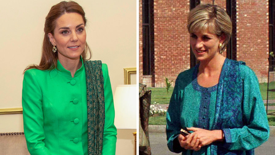 Герцоги Кембриджские принц Уильям и Кейт Миддлтон, находясь с официальным королевским визитом в Пакистане, ежедневно радуют жителей страны нарядами, в которых чувствуется их желание проявить уважение к местным обычаям. Накануне Кейт Миддлтон уже поразила народ своим выбором традиционного костюма бирюзового цвета, похожего на тот, что когда-то носила в Пакистане принцесса Диана.