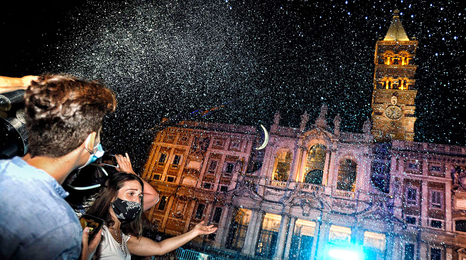 В Риме с опозданием почти на месяц состоялся традиционный городской праздник, посвященный чуду, произошедшему, по легенде, в ночь на 5 августа 352 года. Возле базилики Санта-Мария-Маджоре с неба сыпал снег – точнее, его имитация.