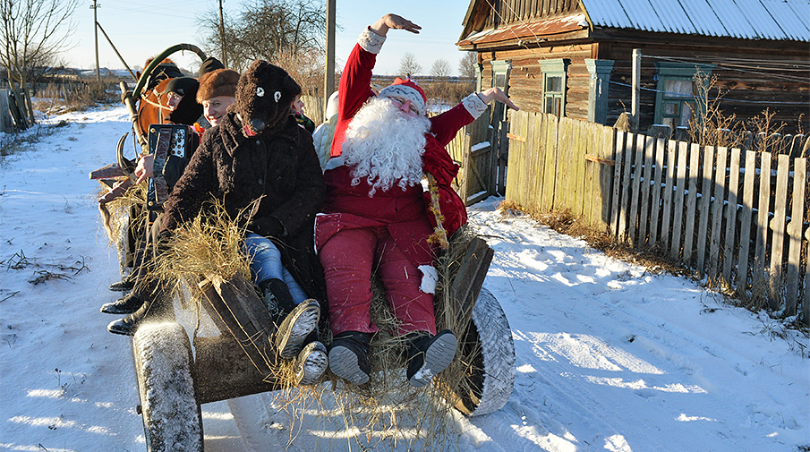 Жители деревни Жажелка Минской области Белоруссии во время празднования Рождества
