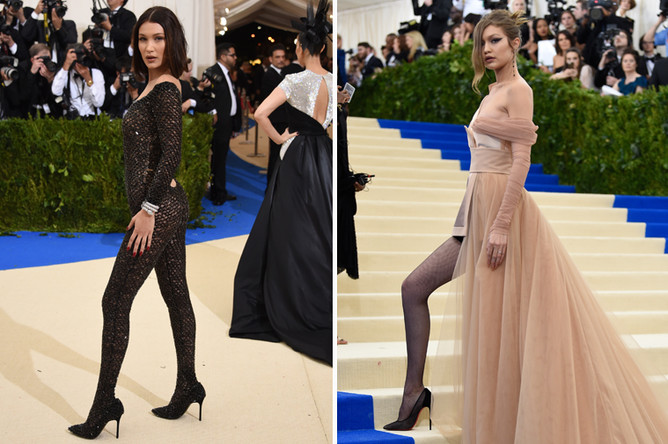 Другие знаменитые сестры, Хадид, тоже выбрали разных дизайнеров и различные стили платьев для выхода в свет. На Джиджи красовалось асимметричное бежевое платье Tommy Hilfiger, как будто созданное для принцессы XXI века, а Белла предпочла черный кружевной «кошачий костюм» с открытой спиной Alexander Wang.