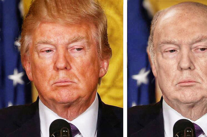 Пользователи твиттера смогли оценить, как бы выглядел Дональд Трамп без своей знаменитой прически и автозагара, придающего его лицу слегка желтоватый оттенок. В минувшую субботу пользователь под ником Stone Cold выложил в сеть отредактированную в фотошопе фотографию, на которой американский президент изображен лысым и с бледным цветом лица.