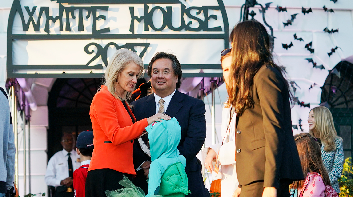 Супруга Джорджа Келлианн Конуэй, которая часто защищает и даже хвалит президента США в регулярных выпусках новостей, вынуждена оправдываться из-за несдержанного поведения мужа: журналисты спрашивают ее о том, что она думает о высказываниях своего супруга в твиттере. Когда в понедельник 18 марта репортеры задали ей вопрос о том, как она относится к твитам своего мужа, Келлианн ответила кратко: «Нет, я не разделяю эти взгляды», — сказала Келлианн.