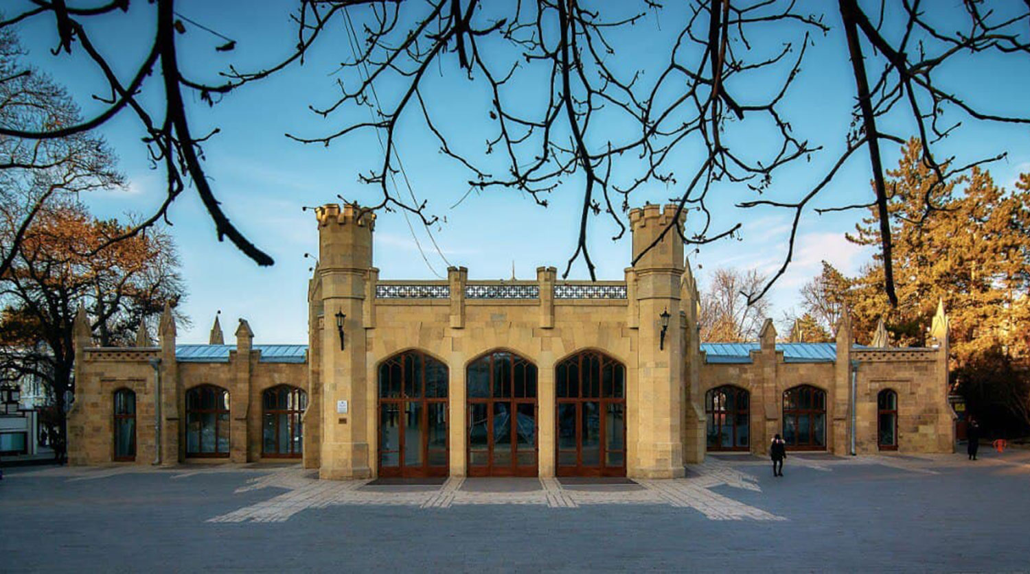 Расположенная в центре Кисловодска, на Курортном бульваре, Нарзанная галерея привлекает внимание своей необычной архитектурой в стиле готического романтизма. Этот волшебный замок удивительно напоминает Воронцовский дворец в Крыму, и для этого есть причины.