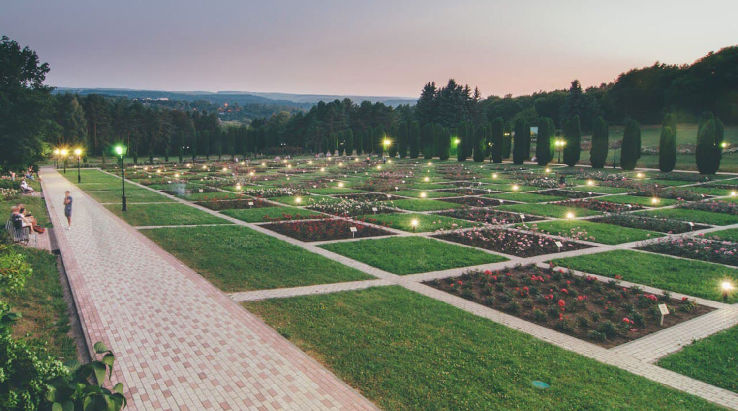 Строго выверенная форма клумб Долины роз особенно хорошо вида сегодня с высоты канатной дороги. Они расположены в шахматном порядке - «клетки», заполненные цветами, перемежаются зелеными участками аккуратно подстриженного газона, границы между которыми образуют плиточные дорожки. Ну а самое настоящее цветочное великолепие ожидает гостей Кисловодска в июле и августе.
