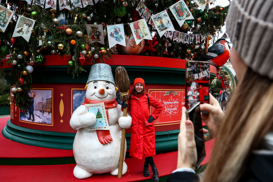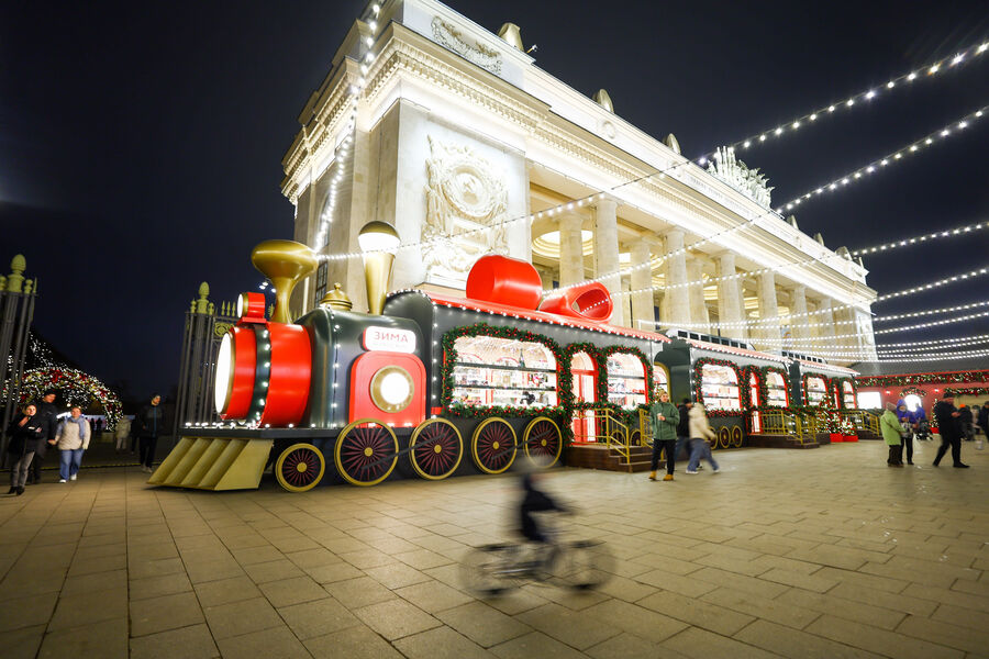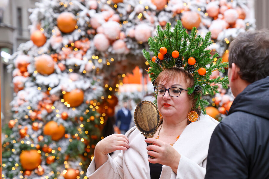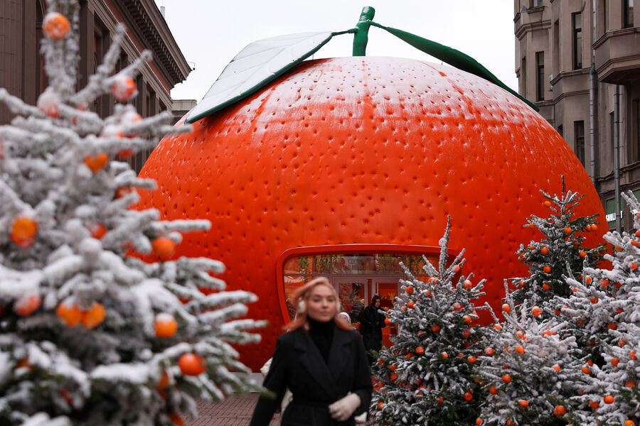 На Арбате установили новогоднюю инсталляцию — гигантские весы с мандаринами. Там же построили целый павильон-мандарин. Перед главным входом в Парк Горького заработала ярмарка, которая располагается в вагонах новогоднего поезда.