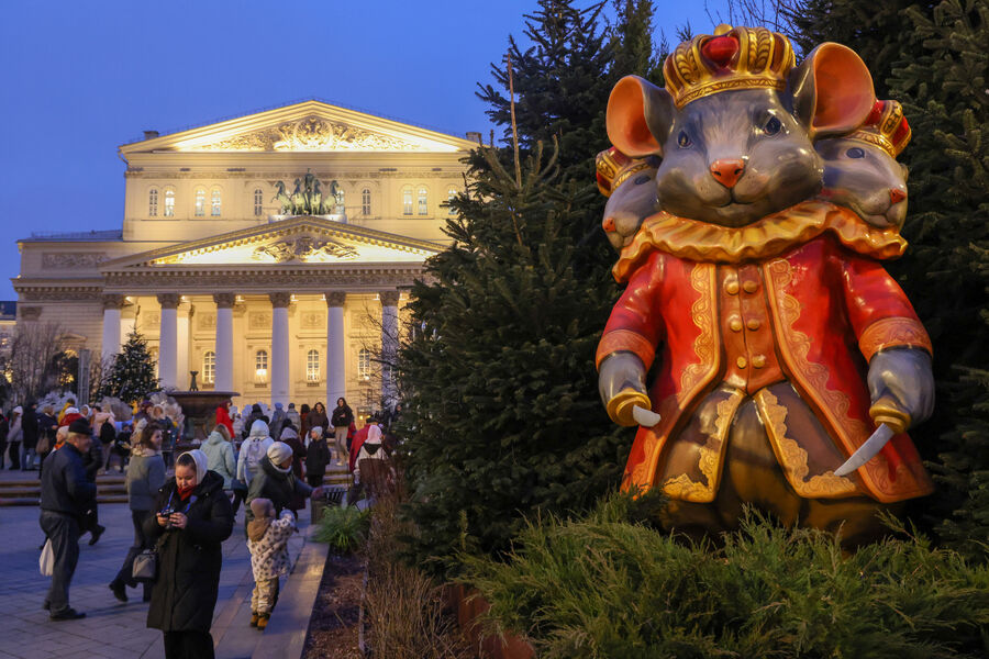 Столицу вовсю украшают к новогодним праздникам. Площадь перед Большим театром, билеты в который на «Щелкунчика» разлетаются за минуты, превратилась в сцену из произведения Эрнста Теодора Амадея Гофмана. На заснеженных деревьях прячутся Щелкунчик и Мышиный король, а над лесом парит воздушный шар из сказочного Конфитюренбурга.
