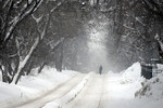 Москву накрыл сильный снегопад. «Роскосмос» накануне опубликовал сделанный спутником снимок западного снежного циклона, приближавшегося к столице.