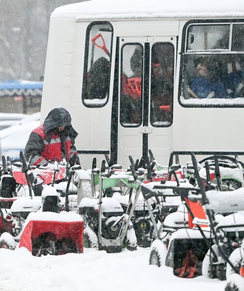 Снегопад вызвал перебои в работе общественного транспорта, парализовал дорожное движение и работу аэропортов.
