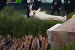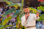 Ожидалось, что артист использует сцену для резких политических заявлений против Трампа и миграционной службы ICE, но этого не произошло. Bad Bunny транслировал со сцены пацифистское послание: «Единственное, что сильнее ненависти, — это любовь», — говорилось на билбордах за его спиной.