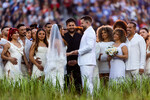 Одним из самых ярких моментов стала свадьба, которую сыграли прямо во время выступления. Пара, попавшая в трансляцию, просила Bad Bunny спеть на их свадьбе, а артист предложил им устроить церемонию на Супербоуле — на глазах у многомиллионной аудитории.