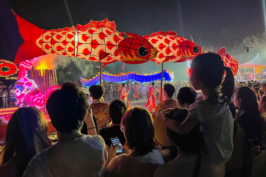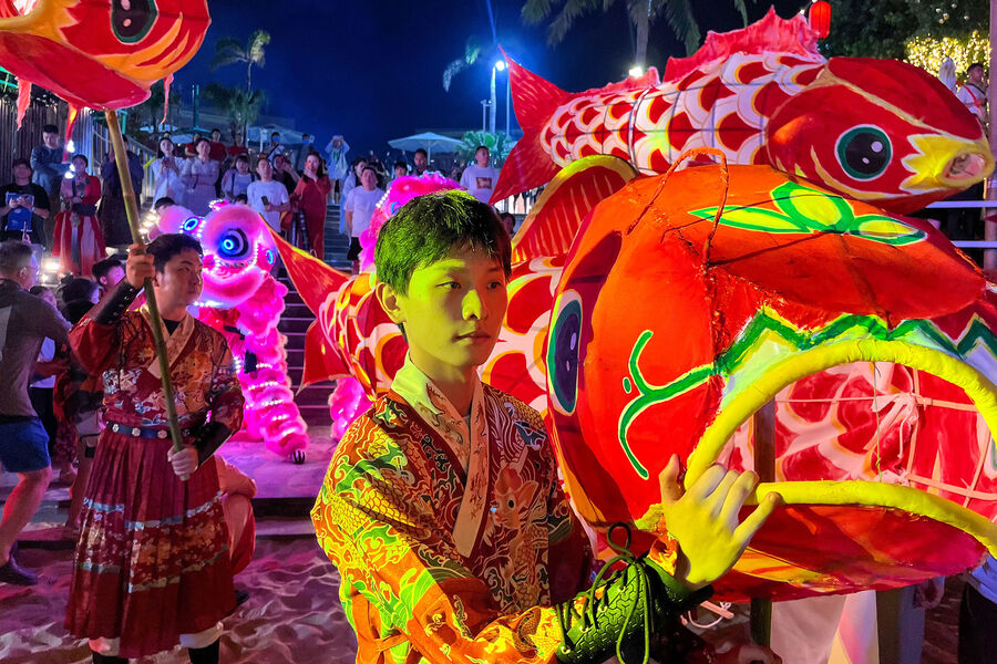 Китайцы дарят красные конверты с деньгами — хунбао. Дома украшают красным декором и фонарями. В новогоднюю ночь запускают фейерверки и петарды, чтобы отпугнуть злых духов и привлечь удачу. Завершается празднование грандиозным Фестивалем фонарей с театрализованными шествиями и танцами дракона и льва.