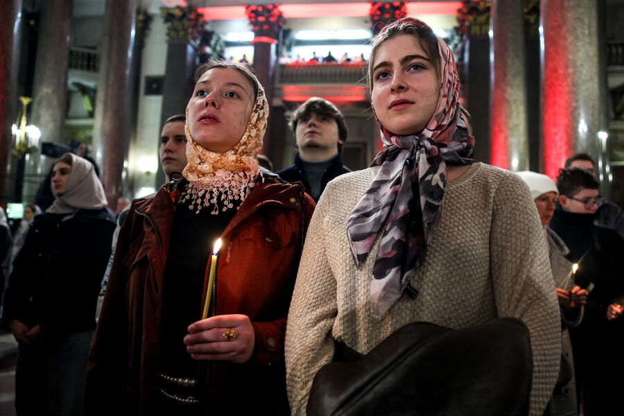 В ночь на воскресенье, 12 апреля, православные россияне встретили Пасху. Торжественные службы прошли в храмах и церквях страны. В храме Христа Спасителя богослужение провел патриарх Московский и всея Руси Кирилл. Церемонию посетил президент России Владимир Путин и мэр Москвы Сергей Собянин.