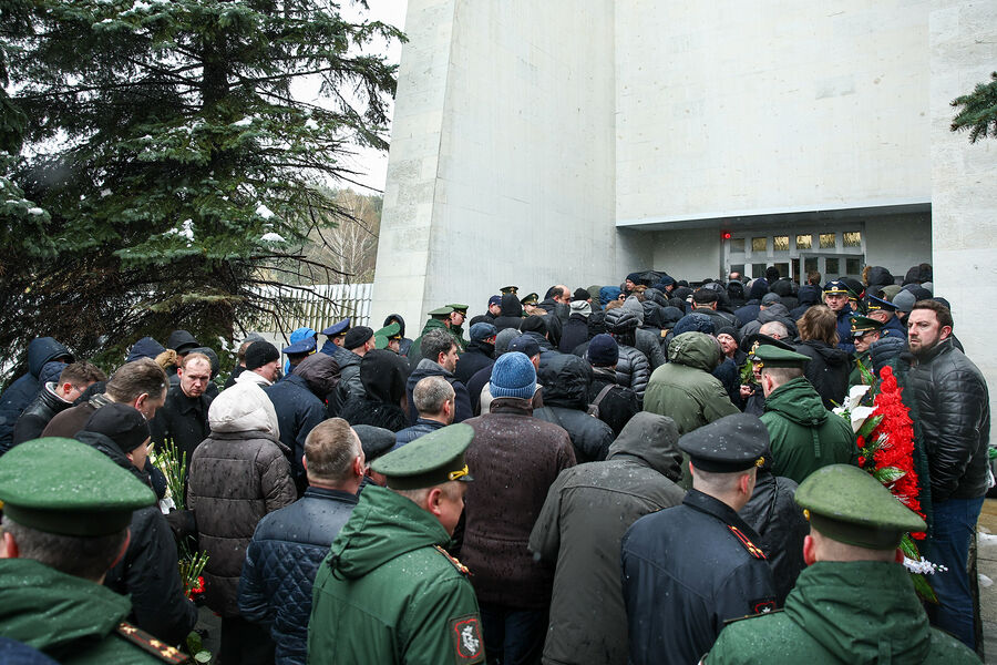 В Большом траурном зале собрались родные, близкие, друзья и коллеги Пиманова. Почтить его память пришли секретарь Совета безопасности РФ Сергей Шойгу, губернатор Московской области Андрей Воробьев, официальный представитель Минобороны РФ генерал-лейтенант Игорь Конашенков и депутат Госдумы РФ, хоккеист Вячеслав Фетисов.